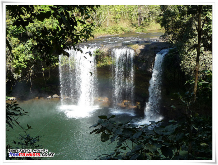 이제 두번째와 세번째 폭포를 들러볼 차례입니다. Tad Yuang에서 2km만 더 가면 길 양쪽으로 Tad Fane과 Tad Champee가 나옵니다. 팍세에서 온다면 38km지점입니다. (팍송 12km 표지석이 보일겁니다) 여기는 Tad Champee만 안내판이 있고 Tad Fane은 작은 화살표 표시만 있습니다. 팍송쪽에서 오면 안 보이기 때문에 지나치기 쉽습니다.
