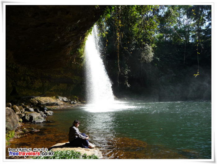 더 좋은 것은 폭포 뒤편으로 들어갈 수 있다는 것입니다. 즉, 폭포수에 가장 가깝게 접근할 수 있는 곳이 바로 여기 Tad Champee입니다. 폭포수 뒤편으로 길이 나 있어서 조심조심 갈 수 있습니다.