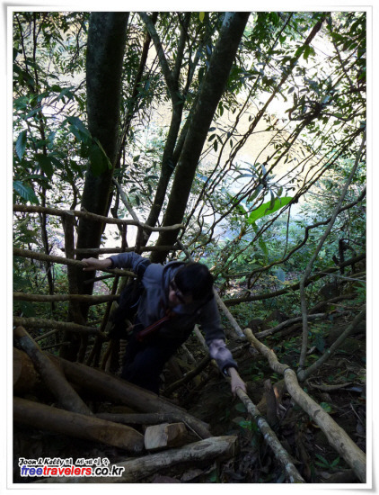 내려가는 길도 나무 사다리를 만들어 놓았습니다. 오르고 내리는게 거의 정글 탐험 수준입니다.