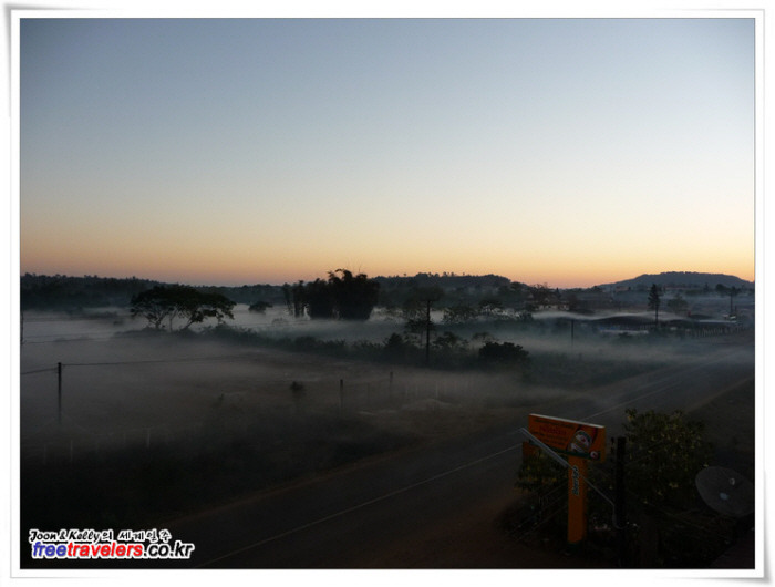 새벽에 잠이 깨어 더 이상 잠이 오질 않네요. 새벽녘에 숙소 밖의 테라스로 나가 보았습니다. 마을에 안개가 내려 앉아 신비로운