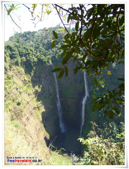 Tad Fane은 120m의 높이를 자랑하는 거대한 폭포입니다. 하지만 아쉽게도 폭포 아래쪽으로 접근은 불가능합니다. 그냥 전망대에서 바라 볼 수 있을 뿐입니다. 폭포 높이가 너무 높기 때문에 전망대에서는 폭포 위쪽만 보이고 아래에 있는 웅덩이는 보이지 않습니다. 전망대 옆으로 작은 오솔길이 나 있는데 Kelly양은 레스토랑에서 립톤티 마시는 동안 저는 그쪽 길로 내려가 봤습니다. 내려갈 때는 좋았는데 점점 길이 가파르고 험해집니다. 마침내 길이 없는 지점까지 나옵니다. 더 이상 내려가려면 바위 틈의 작은 공간에 발을 대고 손으로 나무 줄기를 붙잡고 내려가야 합니다. 아래 사진은 목숨 걸고 찍은 사진입니다. 왜 그랬는지 모르겠지만 정말 천길 낭떠리지에서 찍었습니다. 그까지 내려간 게 아까워서 그랬겠지요?
