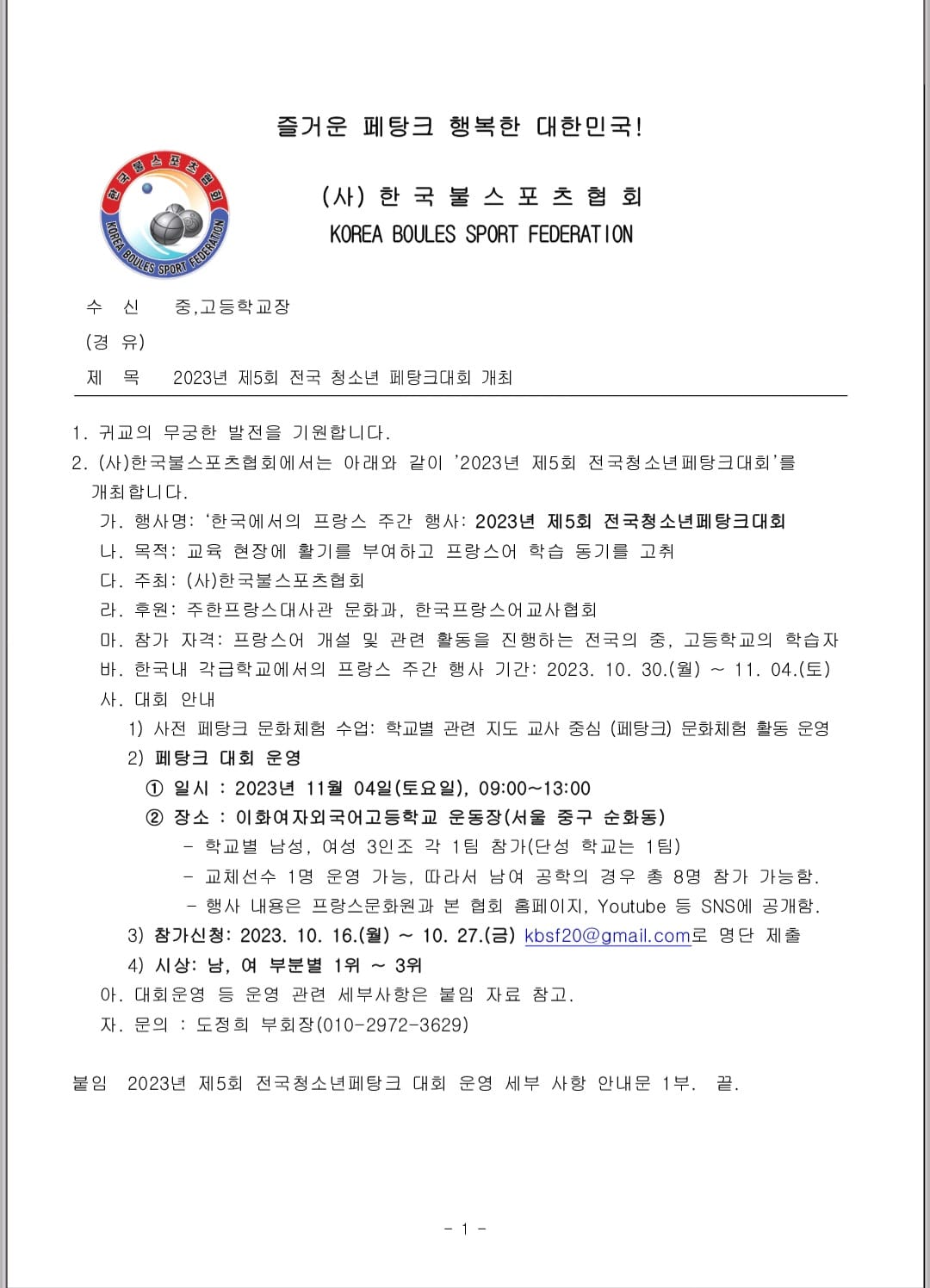 전국 청소년 페탕크대회 관련