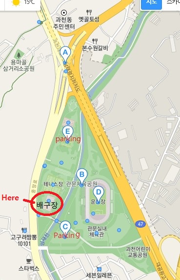 과천관문체육공원 테니스장옆 배구장자리로 보내주시거나