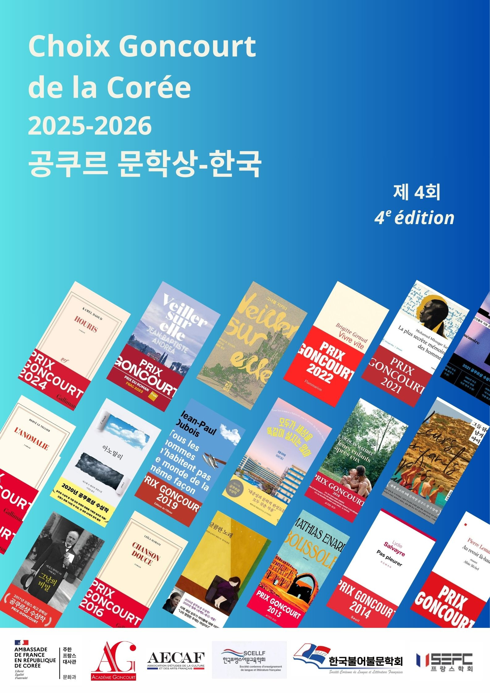 올해 제 4회 « 공쿠르 문학상-한국 » 참가자 모집이 공지가 되어, 관련 이미지와 텍스트, 참가신청서를 전달드립니다 :