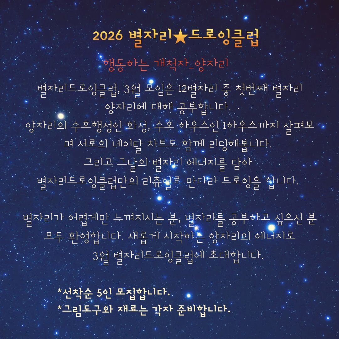 2026년, 별자리 드로잉 클럽_양자리 모임합니다.