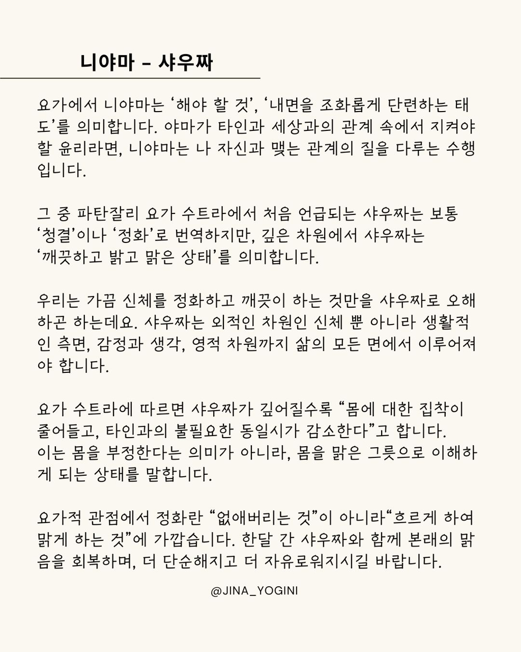 🌿 요가 철학 중 Niyama를 일상에 적용해 보고 싶은 분