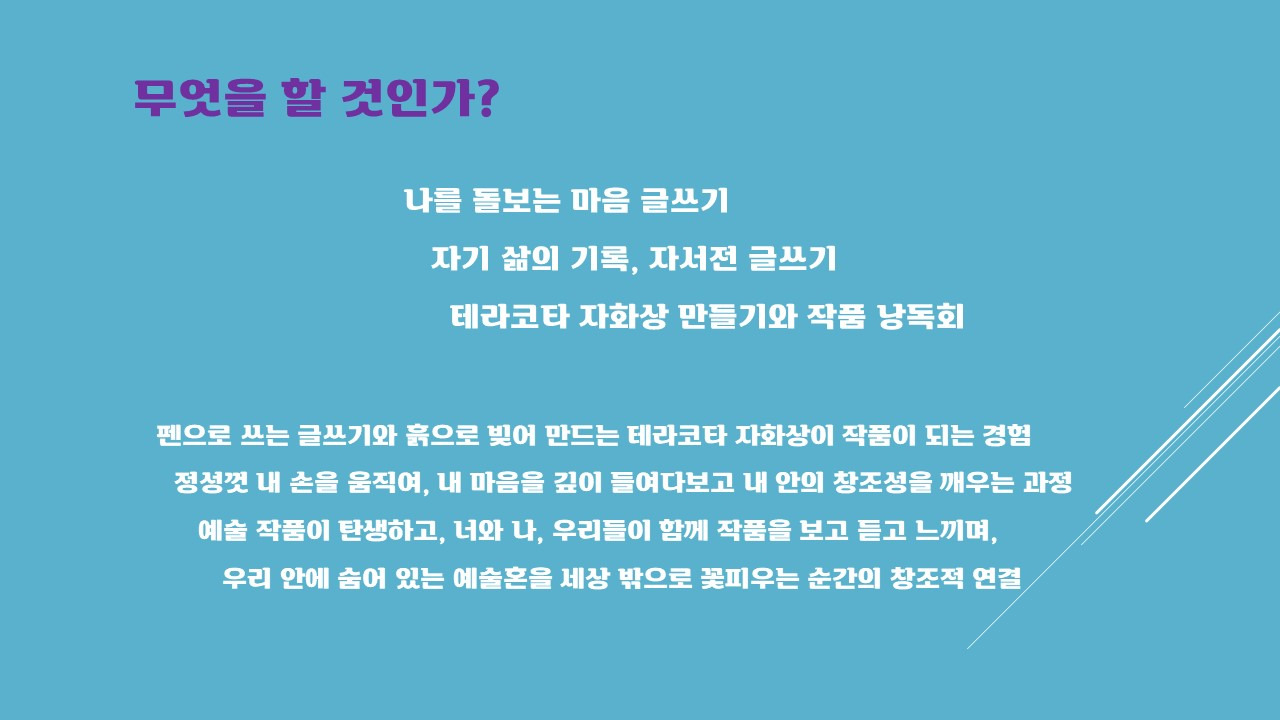 마지막 회기에서는 체험 탐방 대면 수업으로 테라코타 자화상 만들기와 작품 낭독회를 합니다.