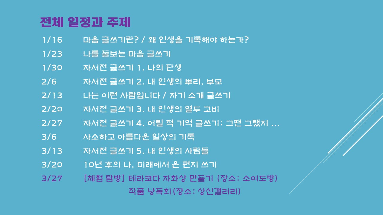 한 해를 시작하며 고요히 나를 돌아보고 나의 삶을 기록하는 자서전 글쓰기를 함께 해보지 않으실래요?