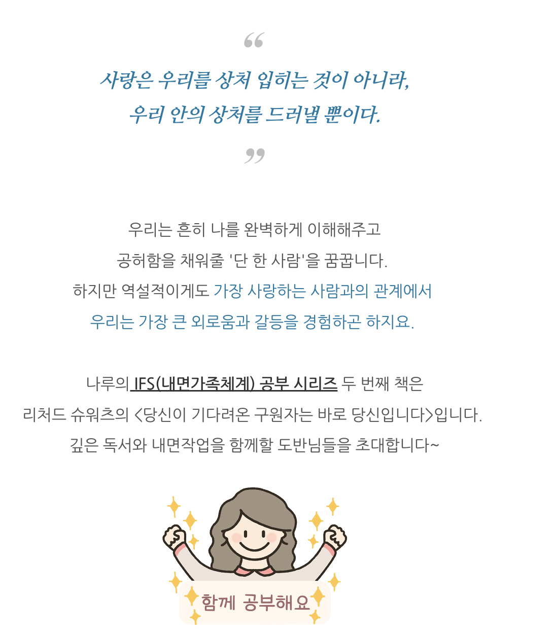 우리 함께 꾸준히 내면을 가꾸고 성장해 나가요.