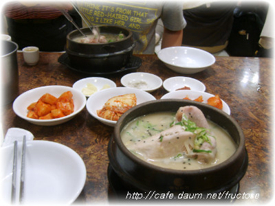 노무현 전대통령이 즐겨 드셨다는 "토속촌" 삼계탕 경복궁역 2번출구 가격은 13,000원 정도... 맛은 그럭저럭 국물에 인삼을 갈아 넣음. 술이 한잔 나오며 깍두기와 김치를 줌. 여러채를 합쳐 지은 식당이라 방 수가 많으며 미로 같은 느낌 위생상태 별로..ㅋㅋ