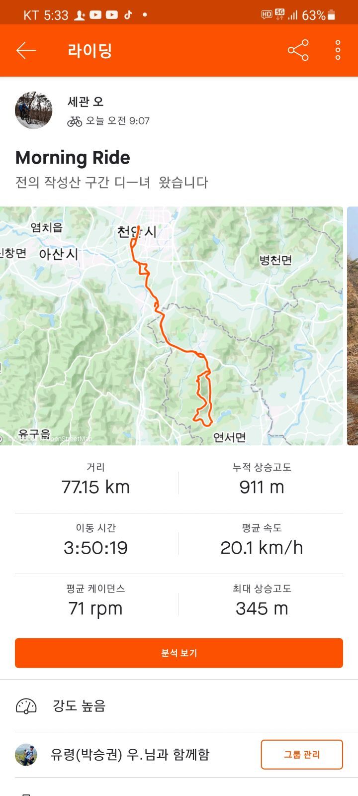 임도라이딩때 허벅지가 잠겨서 버거운 라이딩 이었어요~