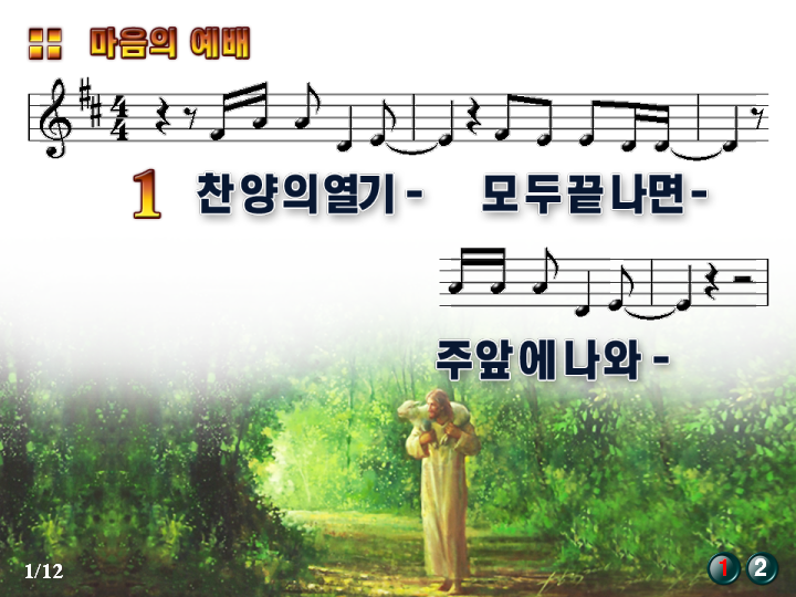 [스크랩] 마음의 예배 / 찬양의 열기 모두 끝나면 파워포인트 PPT 악보 작성자장덕수|작성시간09.08.26|조회수3,452 목록 댓글 0 글자크기 작게가 글자크기 크게가 마음의예배(찬양의열기).ppt 마음의예배 / 찬양의열기모두끝나면 파워포인트 PPT 악보 첨부파일첨부된 파일이 2개 있습니다. png 파일 마음의예배(찬양의열기).png 다운로드 ppt 파일 마음의예배(찬양의열기).ppt 다운로드 다음검색 스크랩 원문 : 오직 주만 현재 게시글 추가 기능 열기 북마크 공유하기 신고 센터로 신고 댓글 댓글 0 댓글쓰기 답글쓰기 댓글 리스트