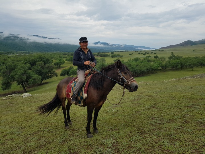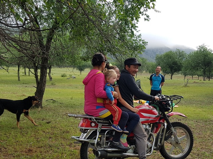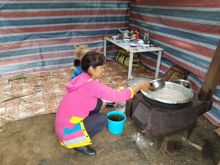 우리가 텐트를 치고 저녁준비를 하자 근처 유목민 바트카가 방문한다.