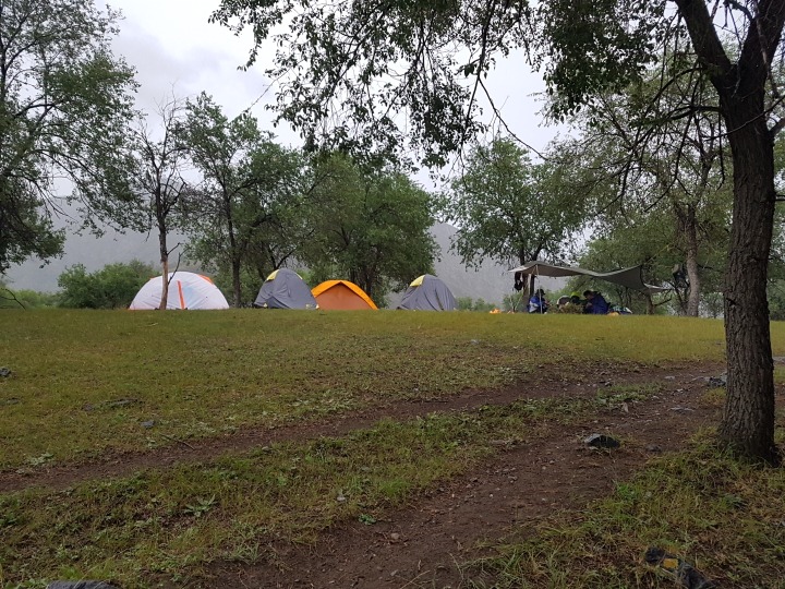 호턱온더르를 떠나7시쯤에 비가 내리기 시작하여 급히 멋진 곳을찾아서 야영지를 정했다.