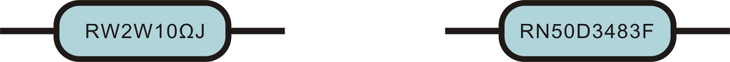 RW는 불연선 권선저항을, RN50D은 군용 규격저항을, 2W는 허용전력이 2와트를, 3483은 저항값을 10Ω은 저항값을, F는 오차율을 의미하며 J는 오차율 즉 저항급수를 의미한다. 이러한 저항은 특수목적에 저항값은 10Ω 이며 5% 오차를 가진 2와트 권선저항이랍니다. 사용되는 저항이랍니다.