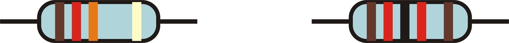 첫째 숫자로 표시된 저항값은 저항기의 표면에 써져 있는 숫자 배열을 알고 있으면 쉽게 읽어 낼수 있고요, 둘째 색띠로 표시된 저항값은 색띠가 나타내고 있는 값을 알고 있으면 쉽게 읽어 낼수 있답니다. 이러한 색띠는 4개 또는 5개로 저항 몸통에 표시되어 있답니다.