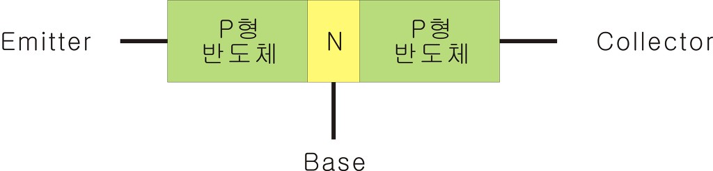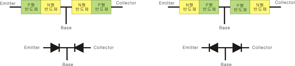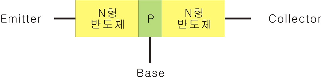 이렇게 접합되어 있는 3개의 반도체중 가운데 반도체를 베이스(Base), 중앙을 기준으로 좌우에 접합되어 있는 반도체를