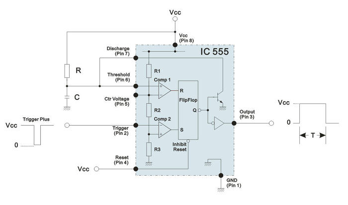 IC 555는 단안정 멀티바이브레이터 회로로 사용하기 위해 개발된 것이지만,