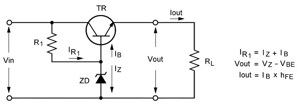 회로를 살펴보면 R1에 흐르는 전류는, 제너다이오드와 트랜지스터 베이스로 흐르게 되므로