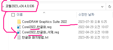 폴더명 CorelDRAW Graphics Suite 2023 표기로 바꾸어