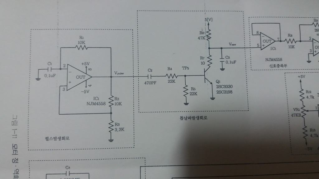 (첫 번째 박스 회로 - 펄스 발생 회로) 를 그리고, 시뮬레이션을 해 보려고 하는데요...