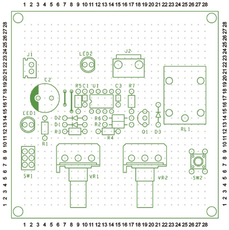 회로에 전원이 인가된 후 초기 ON time은 약 30분 정도가 됩니다. 이후 회로가 안정화되면, time은 약 0.5 초 ~ 25 분, OFF time은 약 0.5 초 ~ 25 분의 주기로 조정할 수 있답니다.