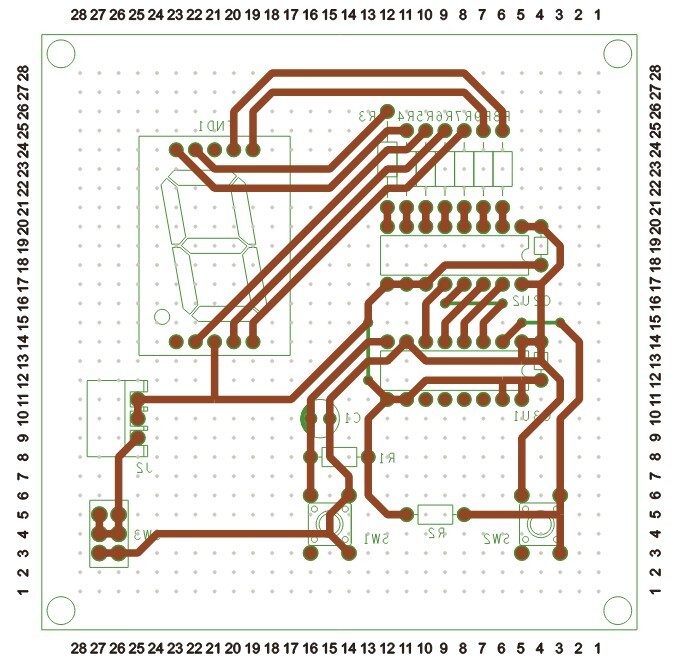 7 세그먼트를 사용하여 숫자를 표시하는 계수기 회로랍니다.