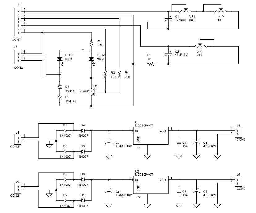 회로는 정전압과 정전류를 표시하기 위한 CC, CV 램프 회로와 전압과 전류 출력을 가변하기 위한 가변 회로, 전원공급기 전면부의 전압/전류 표시회로에 공급되는 전원회로가 구성되어 있답니다.