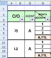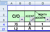 A열과 B열의 데이터를 병합을 해제하고 사용하시는게 가장 좋은 방법입니다.