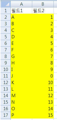 먼저 첫번째 데이터가 아래 그림과 같이 A1:B17셀에 있다고 가정합니다.