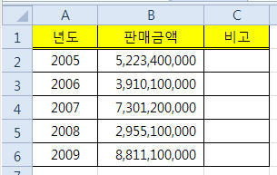 그럼 먼저 아래표와 같은 데이터를 묶은 세로 막대형 차트로 만들어 보도록 하겠습니다.