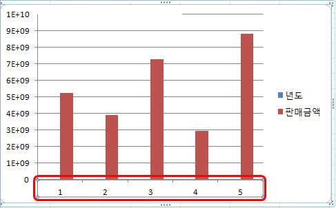가로축(x축)에 년도가 아닌 1,2,3,4,5로 데이터가 표시가 되어 있군요.