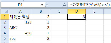 그럼 [A1], [A3], [A5]셀이 2를 반환하므로 문자열이라는것을 확인할 수 있습니다.