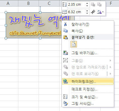 삽입된 그림을 우측클릭해서 [하이퍼링크]를 실행합니다.