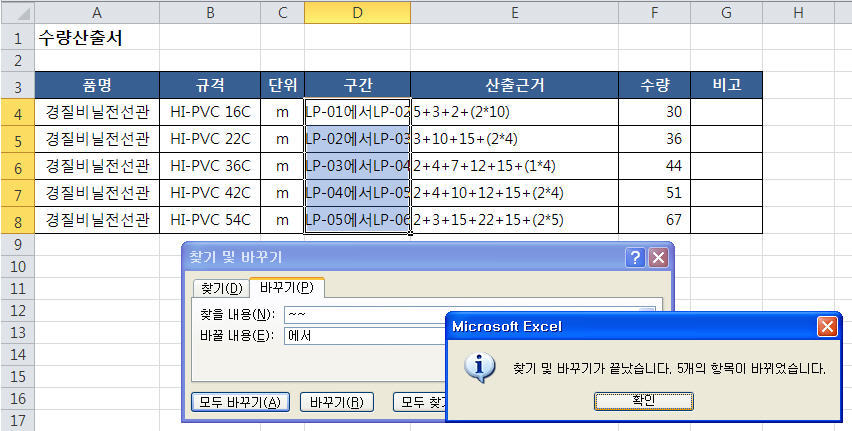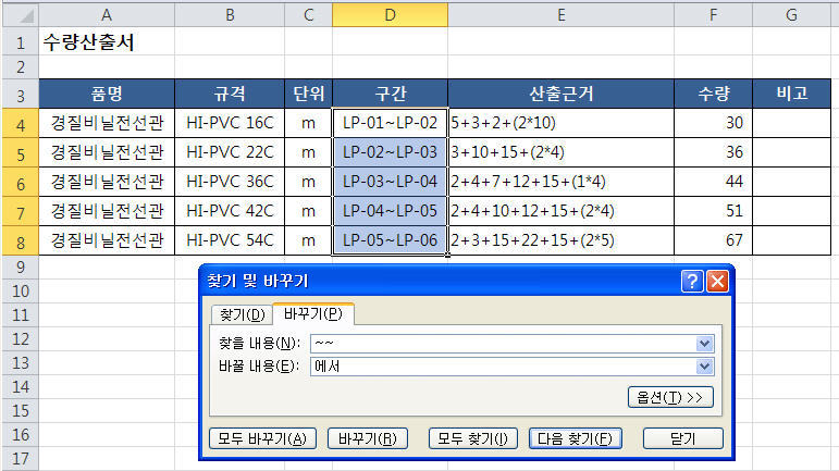 헌데 구간에서 ~는 [에서]라는 문자로 바꾸라고 하고 또 산출근거의 *는 ×문자로 바꾸고자 합니다.