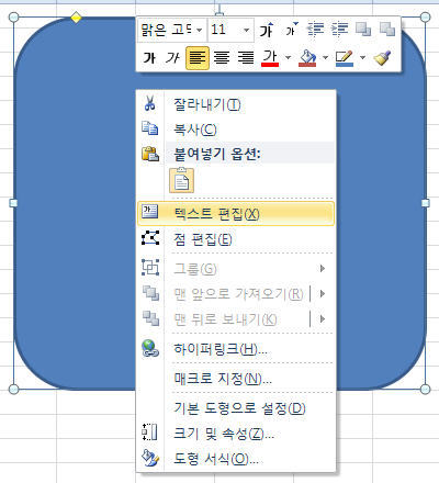 그리고 해당개체를 [우측클릭]-[텍스트 편집]을 실행해서 개체에 글을 입력할 수 있도록 합니다.