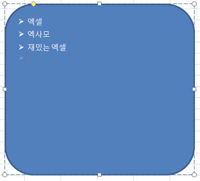 다시 글을 입력할 수 있는 개체로 돌아오면 입력된 '엑셀'이라는 글씨 앞부분에 내가 선택한 [글머리 기호]가 나타나는것을 확인할 수 있습니다.
