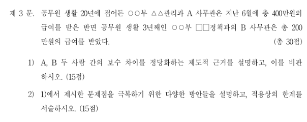 소문 1번 에서 보수 차이를 정당화하는 제도적 근거를 쓰라고 했었는데