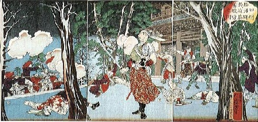 세리자와 카모(芹沢 鴨) 와 그의 정부 오우메, 그리고 히라야마 고리오(平山 五郞) 가 암살 당한 곳(1863년 9월 18일).