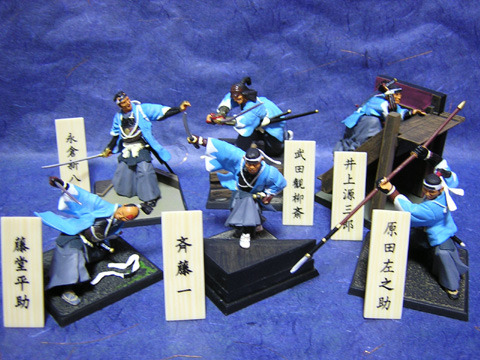 세리자와 카모, 나가쿠라 신파치, 오키타 소지, 사이토 하지메, 히지카타 토시조 의 핸드폰줄 피규어인형.