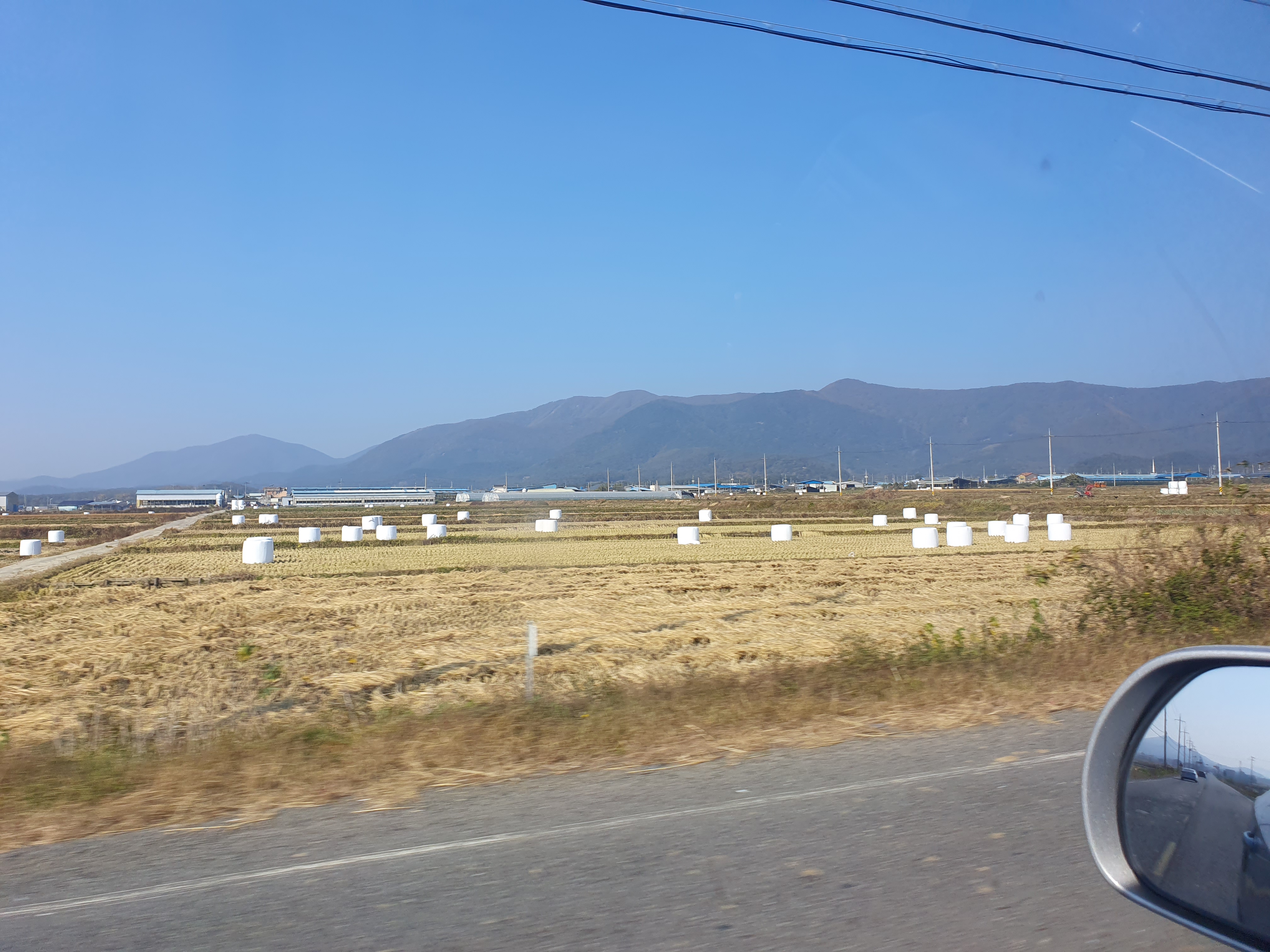 들반에는 소먹이용 볏짚인 하얀 공룡알만 가득하다.