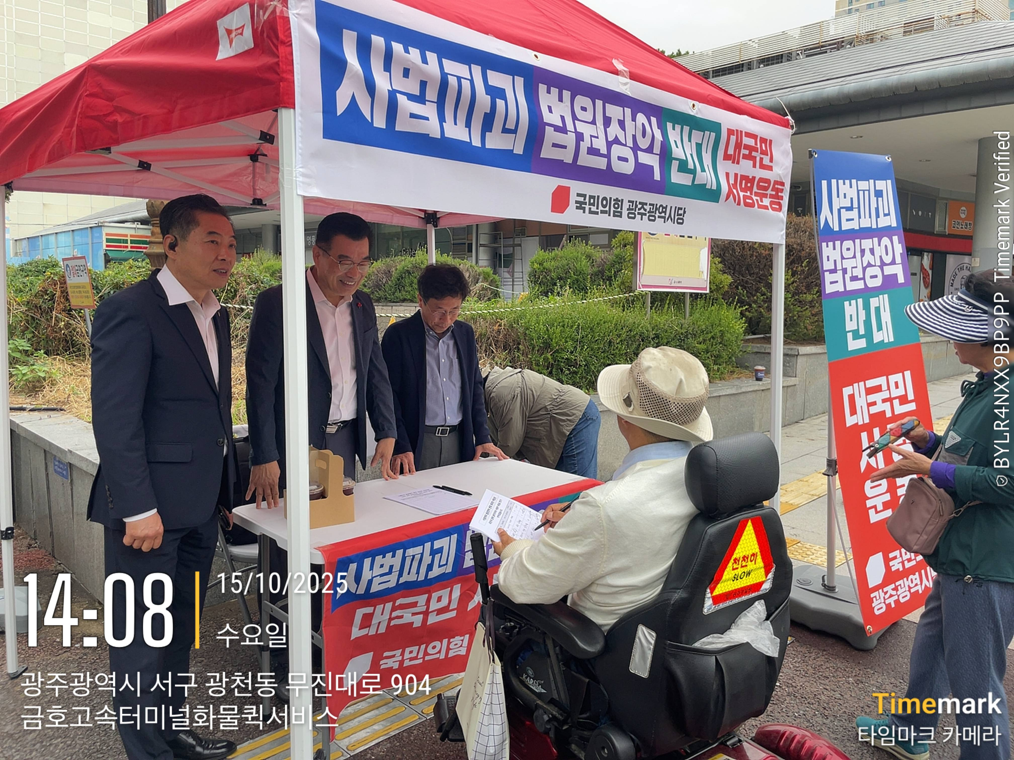사법파괴, 법원장악 반대 대국민 서명운동1 작성자국민의힘광주광역시당|작성시간25.10.15|조회수35 목록 댓글 0 글자크기 작게가 글자크기 크게가 2025.10.15(수) 광천터미널광장에서 시당위원장(안태욱)과 서구갑위원장(허헌식) 및 서구을위원장(김 윤) 당직자 10여명과 함께 [사법파괴, 법원장악 반대 서명운동] 활동을 펼쳤습니다. 다음검색 현재 게시글 추가 기능 열기 북마크 공유하기 신고 센터로 신고 댓글 댓글 0 댓글쓰기 댓글 리스트