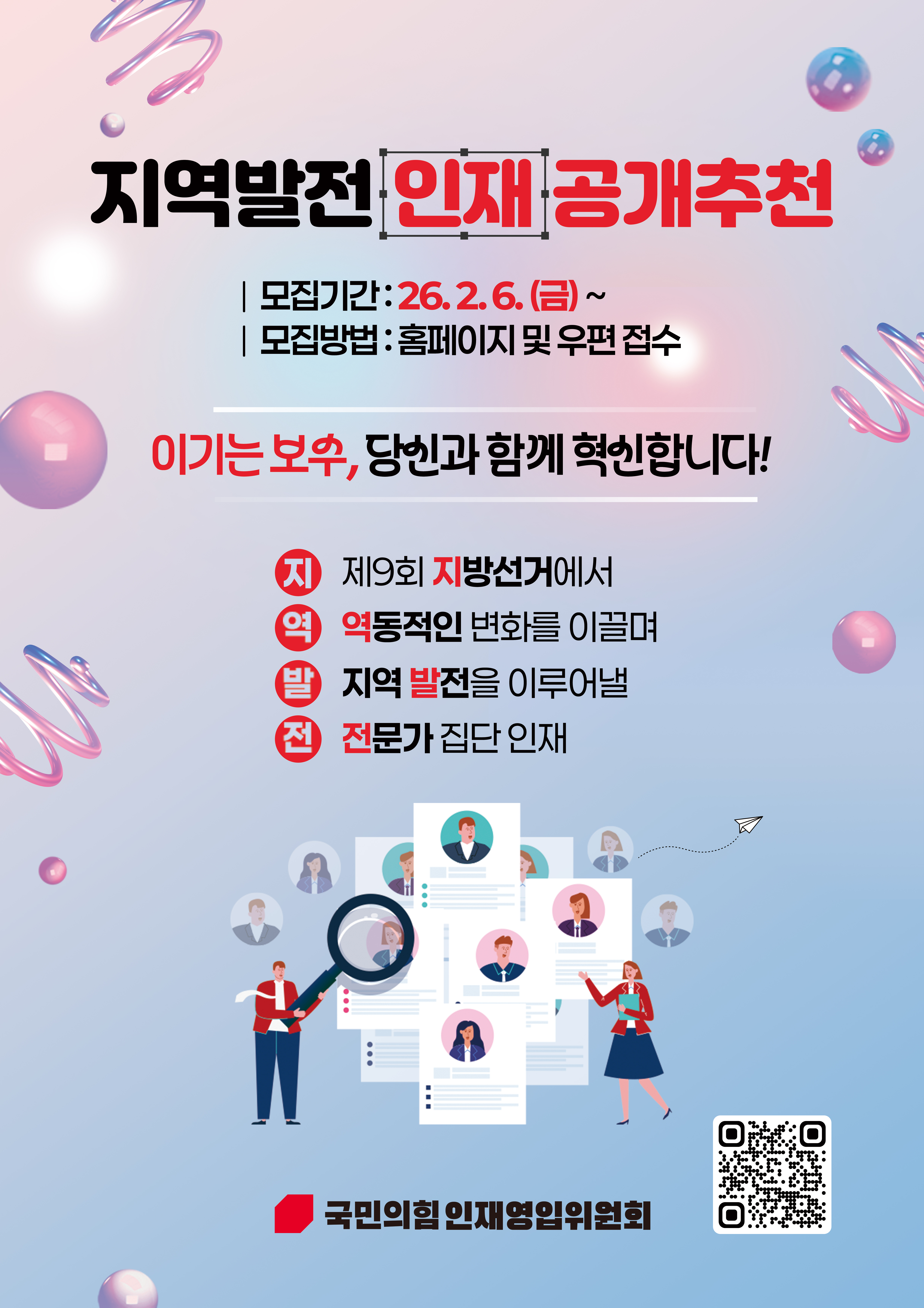 지역발전 인재 공개추천 작성자국민의힘광주광역시당|작성시간26.02.10|조회수32 목록 댓글 0 글자크기 작게가 글자크기 크게가 다음검색 현재 게시글 추가 기능 열기 북마크 공유하기 신고 센터로 신고 댓글 댓글 0 댓글쓰기 댓글 리스트