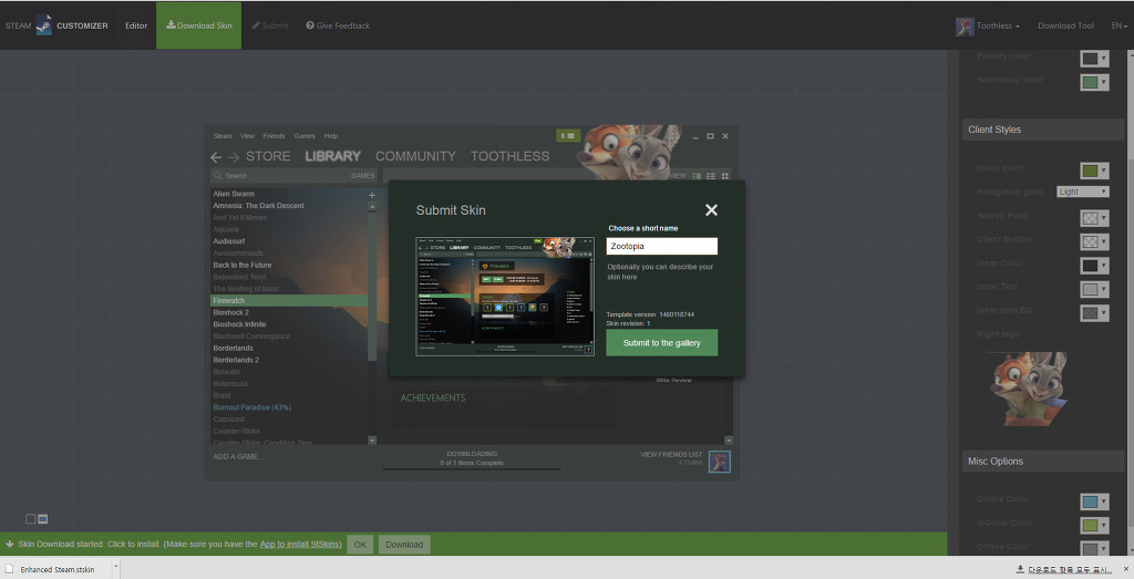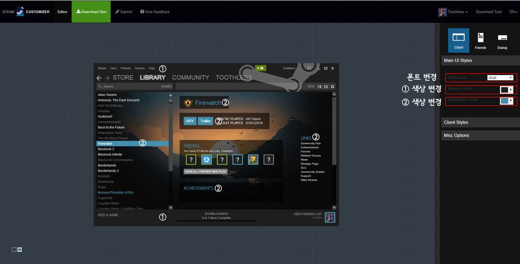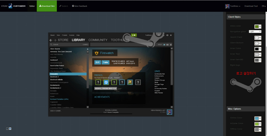 오늘 설명할 사이트는 스팀 클라이언트를 자기 마음대로 디자인 하고 적용시킬 수 있는