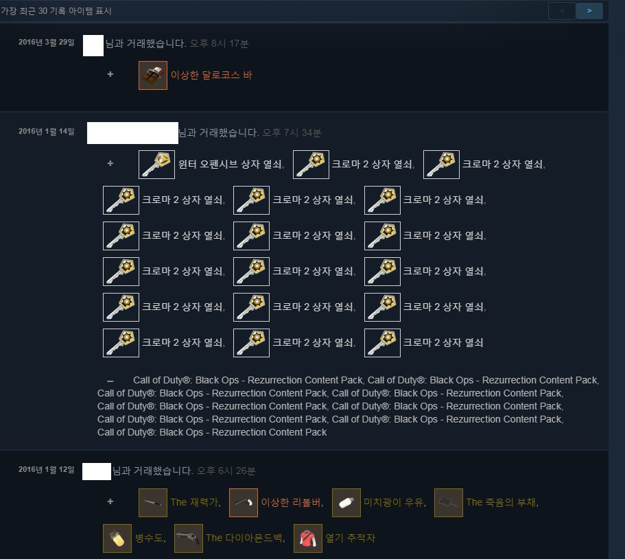 지금까지 거래해온 애들 닉이 기억이 안나거나 혹시나 템이 없어졌는데 누구랑 거래를 한게 아닌가 싶으면 찾아봐도 되니까