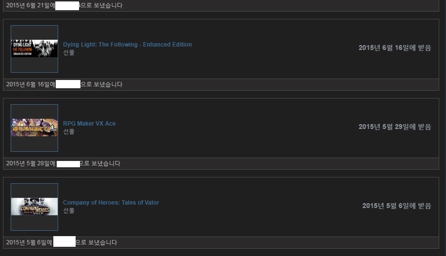 이렇게 그간 내가 어떤 놈한테 겜을 선물로 줬는 지도 볼수 있더라