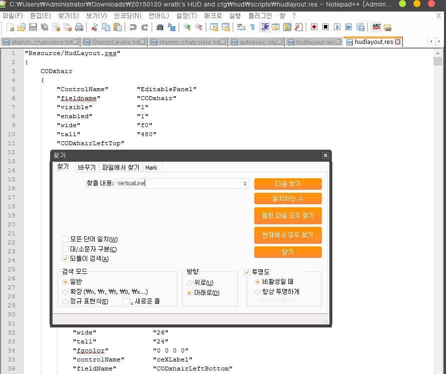 여기서 다시 notepad++로 너의 hudlayout을 열어줘