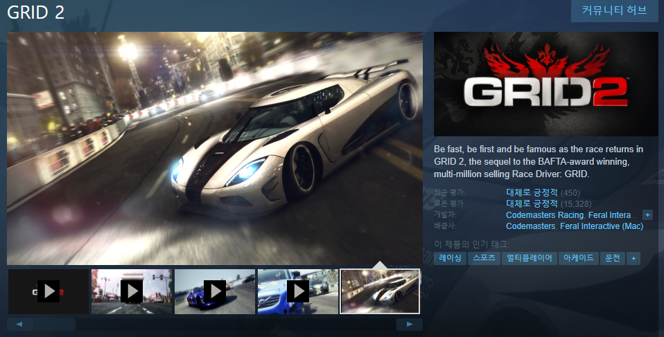 이전에도 뿌린적이 있었던 레이싱 게임 그냥 스팀 상점에서 라이부라리에 담기 하면 끝