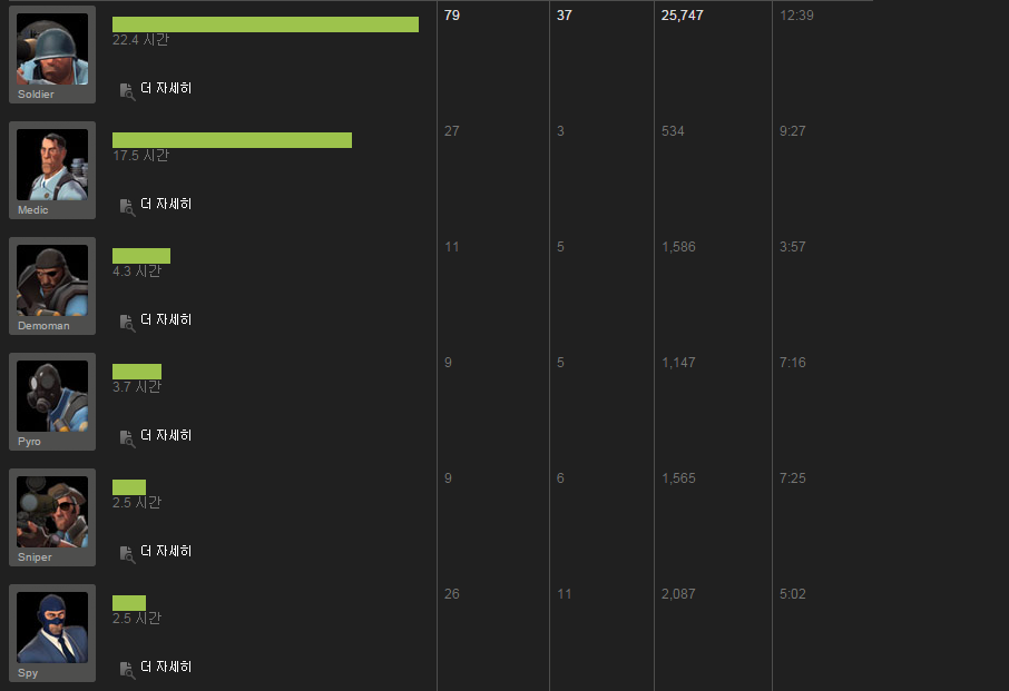 내가 메딕이라서 헤비 사랑을 외치지만 정작 헤비 플탐은 꼴찌.