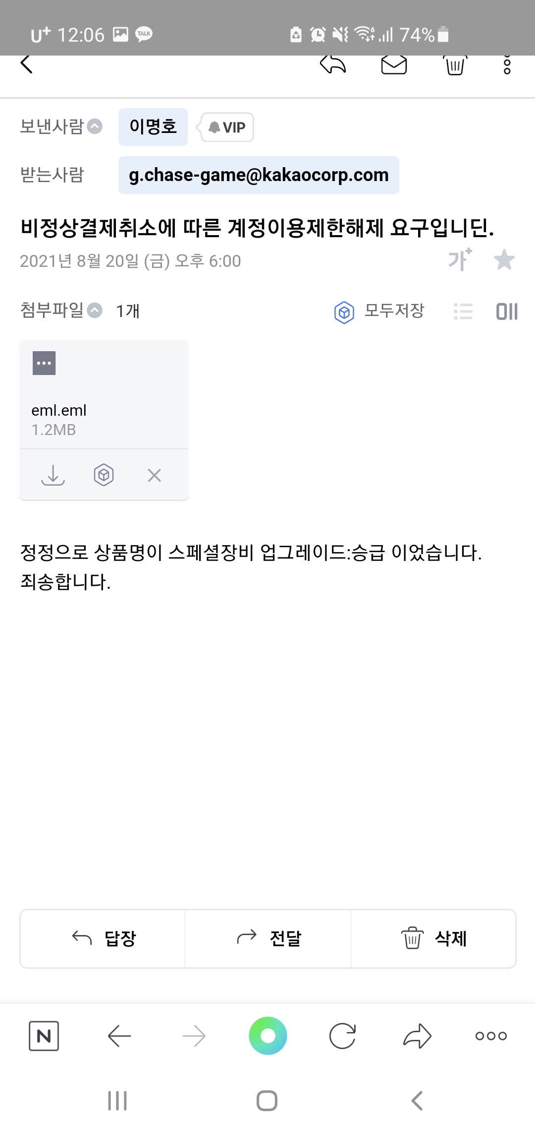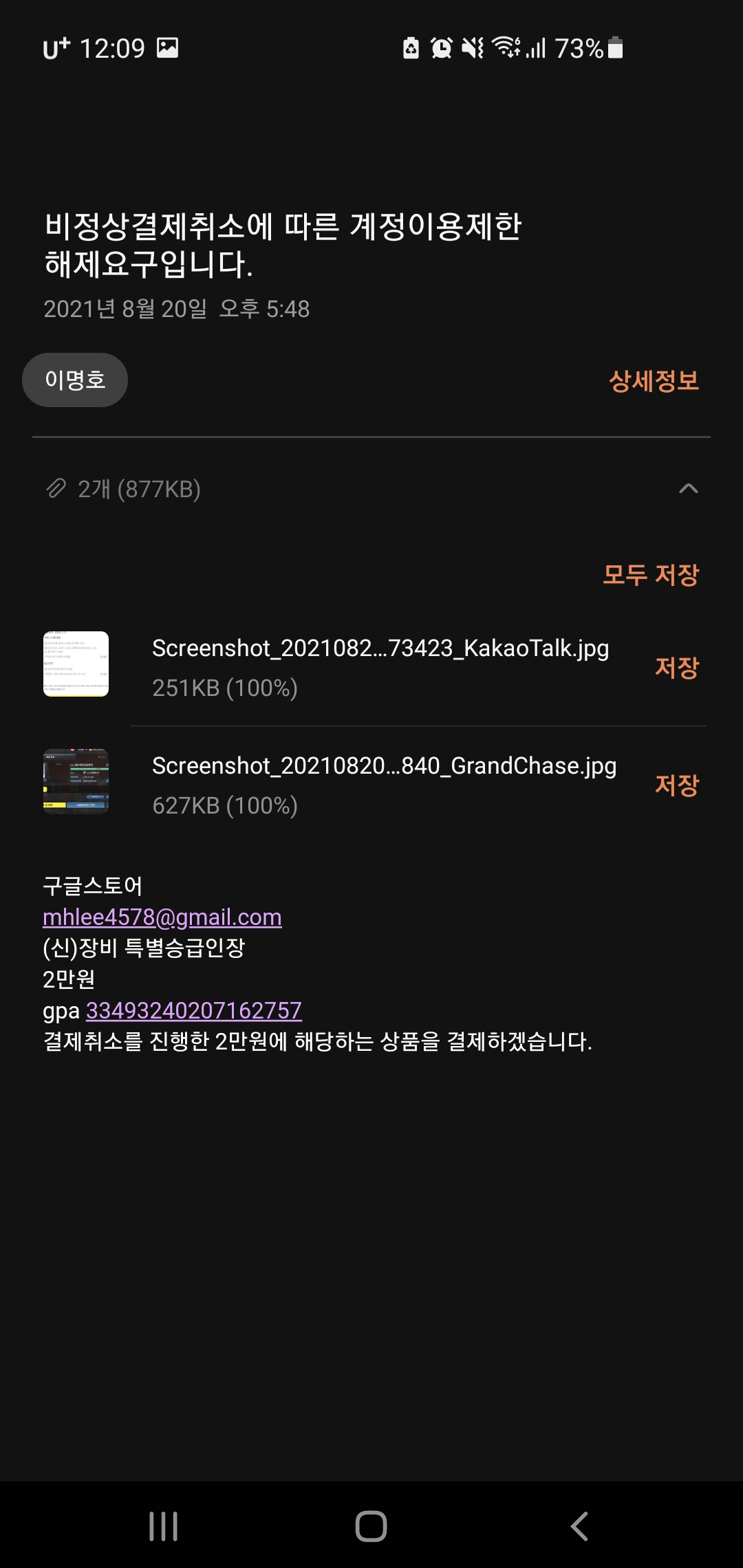 그리고 이후 다시 들어가보니 상품이 들어와서 이를 길드원분들과 이야기해보니 이렇게되면 정책에따라 정지라고하더라고요. 그래서 이에대해서 문의를해보니 저기위의 양식에 맞춰서 메일을 다시보내라고 하더라고요.